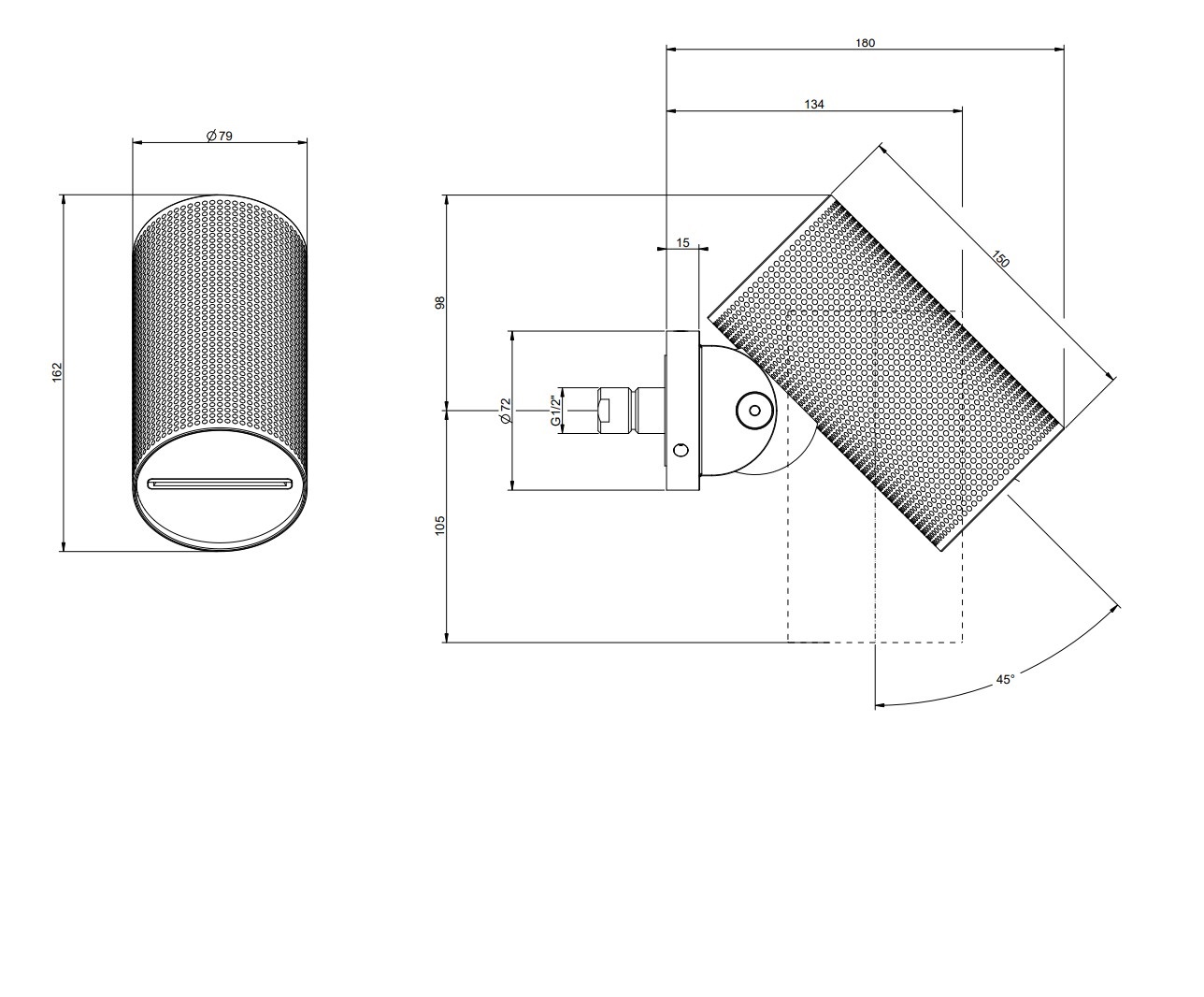 Верхний душ настенный, ВОДОПАД, регулируемый угол наклона.