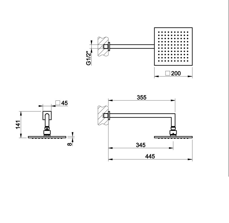 Верхний душ на настенном держателе.