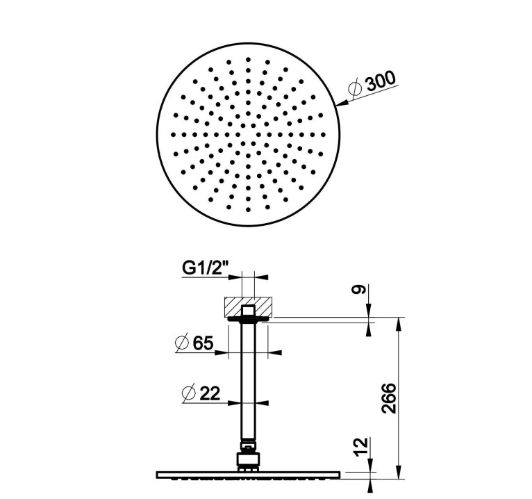 Верхний душ поворотный, на потолочном держателе.